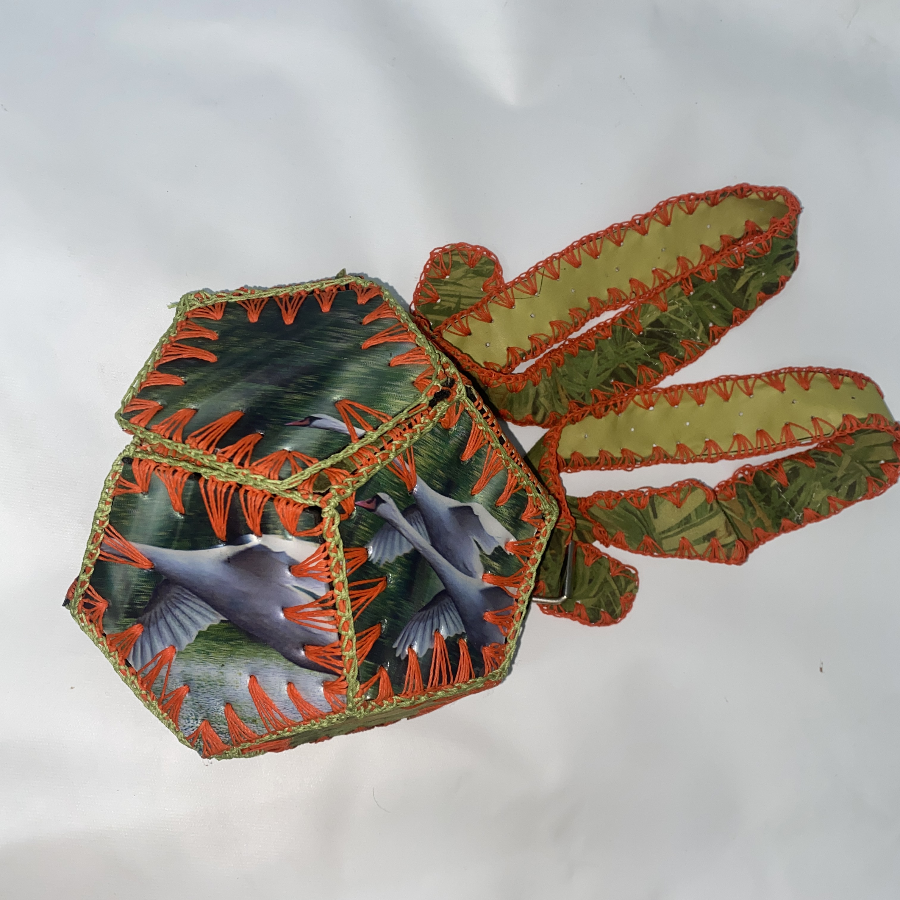 Bandolera de cuero o eco-cuero, tejida crochet por la Santa Trava y fabricada a pedido. Demoramos 15 dias habiles en realizarlo. consultar si hay stock disponible.